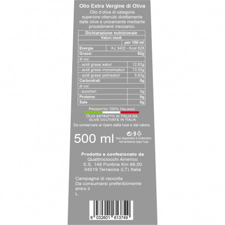 🇮🇹 Huile d’Olive Extra Vierge Quattrociocchi 500ml | 1°Olio Fruité
